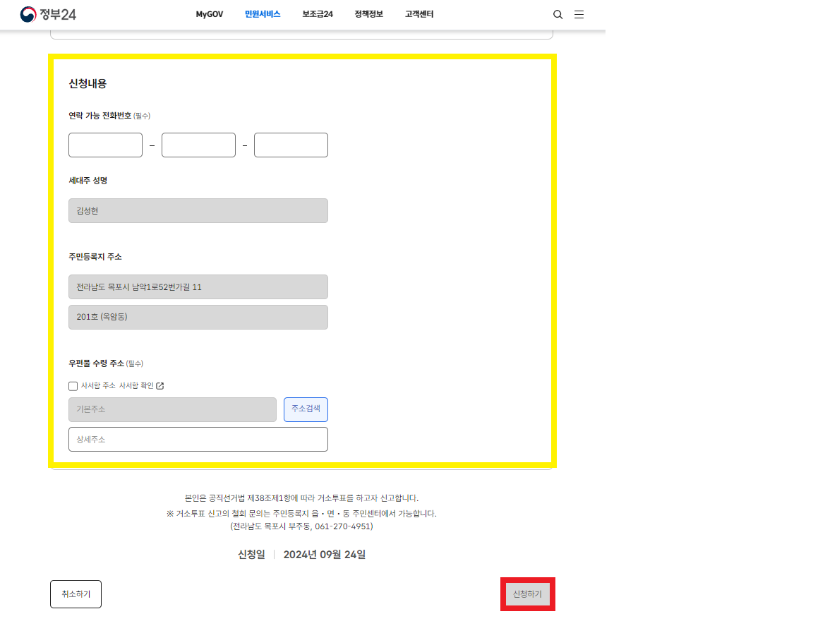 거소선상투표는 본인만 신청할 수 있습니다. 대리 신고는 허용되지 않으니 유의해주세요!
