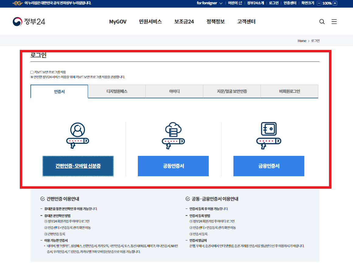 3. 정부24 로그인하기