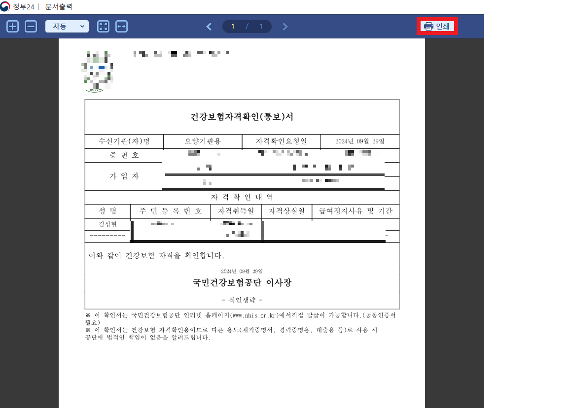 2024.09.02 - [유용한 정보(서류)] - 건강보험자격득실확인서 발급받는 방법 수수료 2