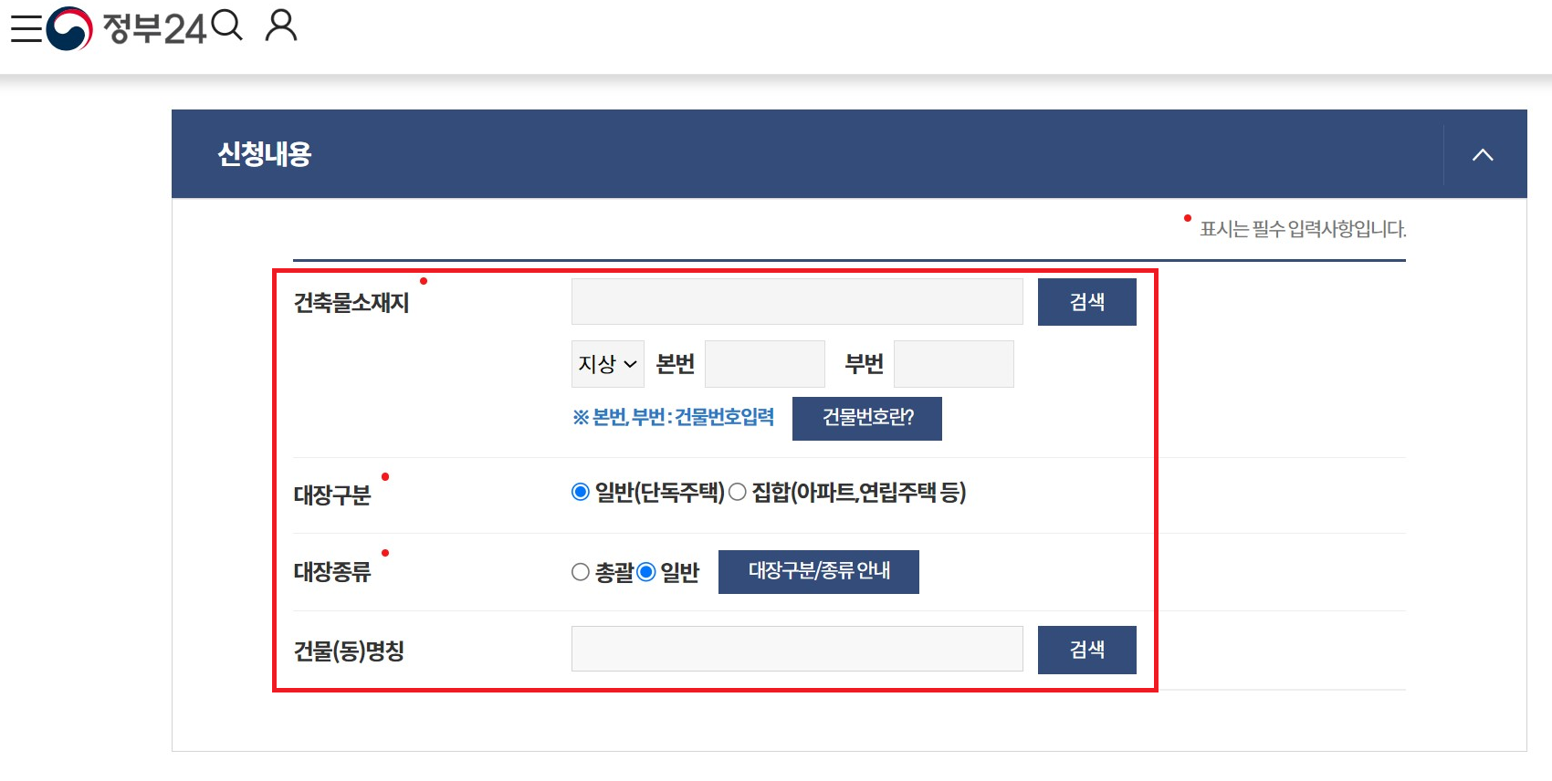 건축물대장을 발급받으실 때, 본인이 발급받고자 하는 건축물이 일반건축물인지, 집합건축물인지 정확히 파악하셔야 합니다. 여기에 따라서 총괄/일반/표제부/전유부 등 발급옵션이 달라지기 때문입니다.