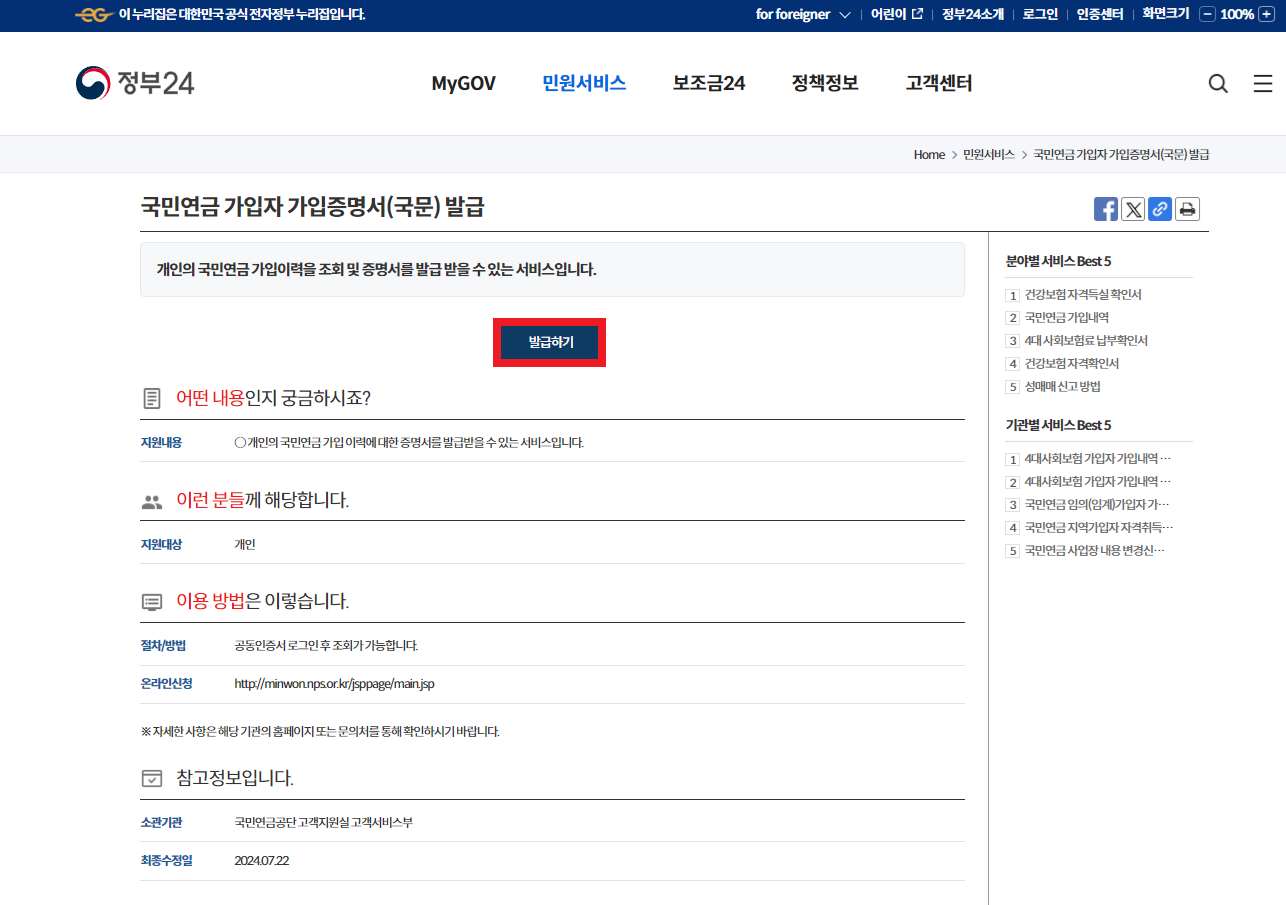 수수료는 국민연금공단에 직접 방문하셔서 발급받으시든, 정부 24나 국민연금공단 홈페이지를 통한 발급이시든 상관없이 무료입니다. 그러니 부담 없이 편하게 발급받으시면 됩니다.