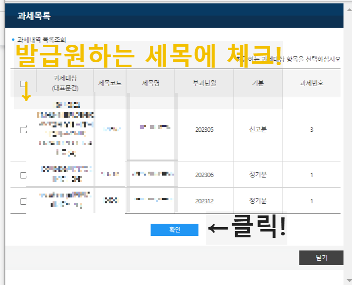 6) 과세목록 확인하기