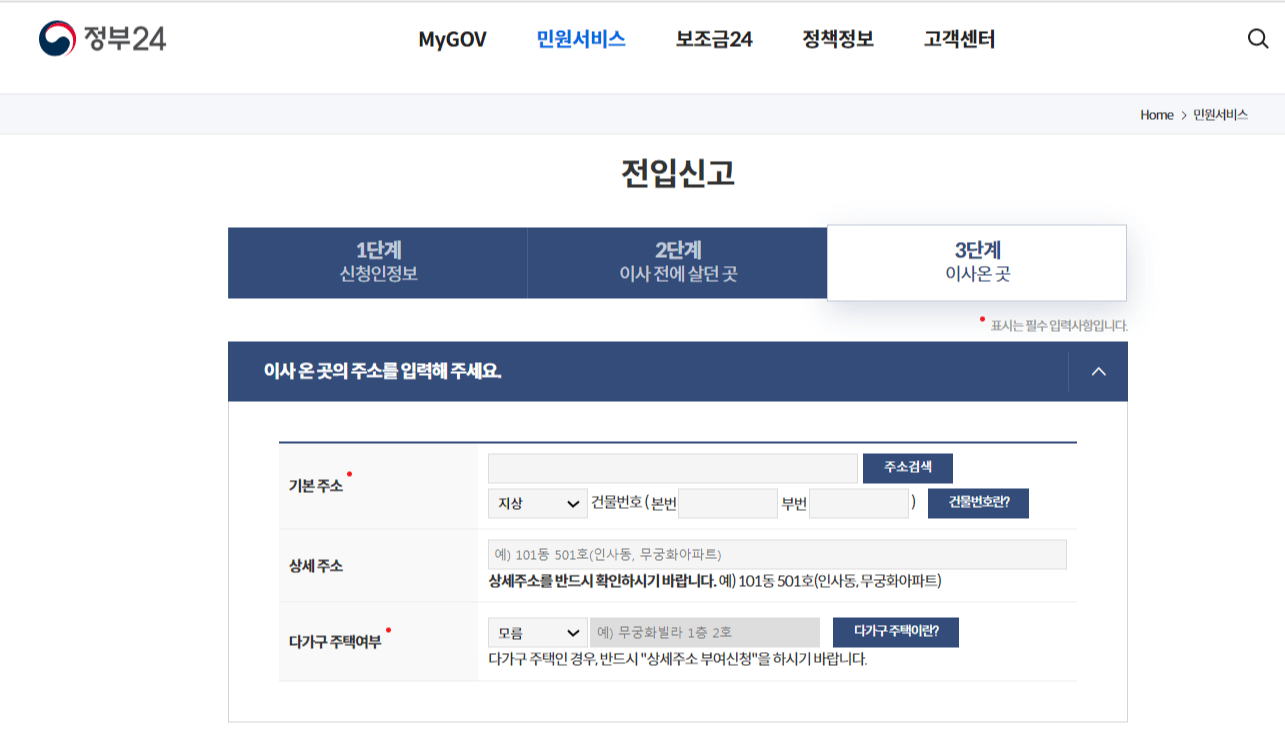 ③ 이사 온 곳(전입신고를 할 주소)에 기존에 살고 있는 세대주가 있는 경우->해당 주소의 세대주 확인이 필요합니다.