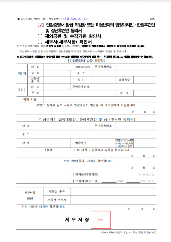 | 인감증명서 대리발급하는 법 2(미성년자, 수형자 등) (0) | 2023.10.10 |