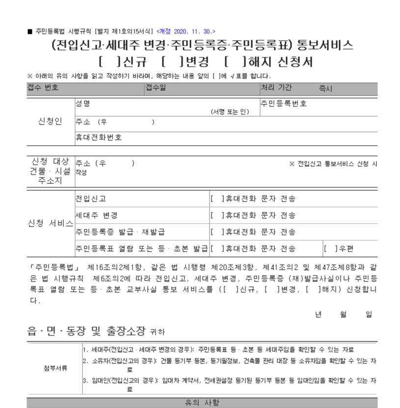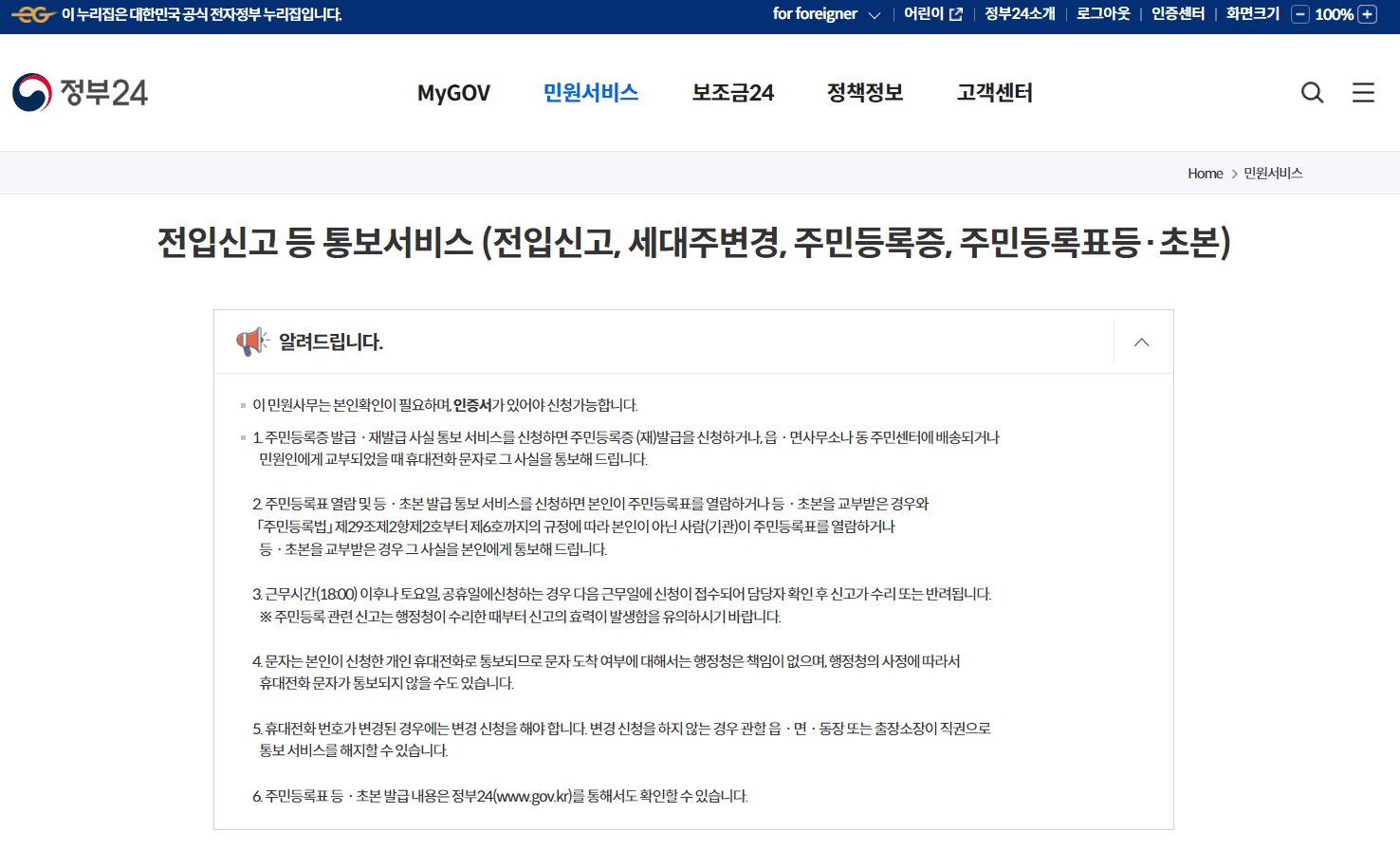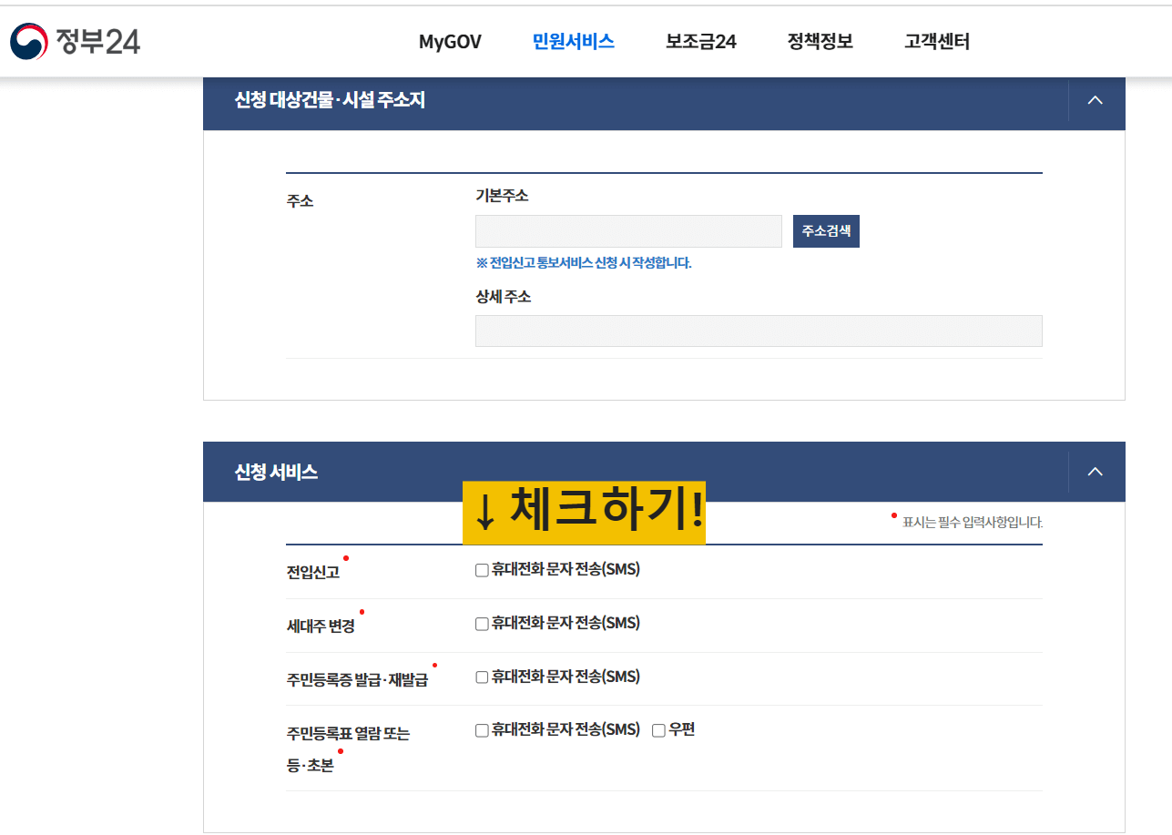 (※전입신고와 세대주변경의 통보서비스는 세대주만 해당되니 이점 참고해 주세요! ※ )
