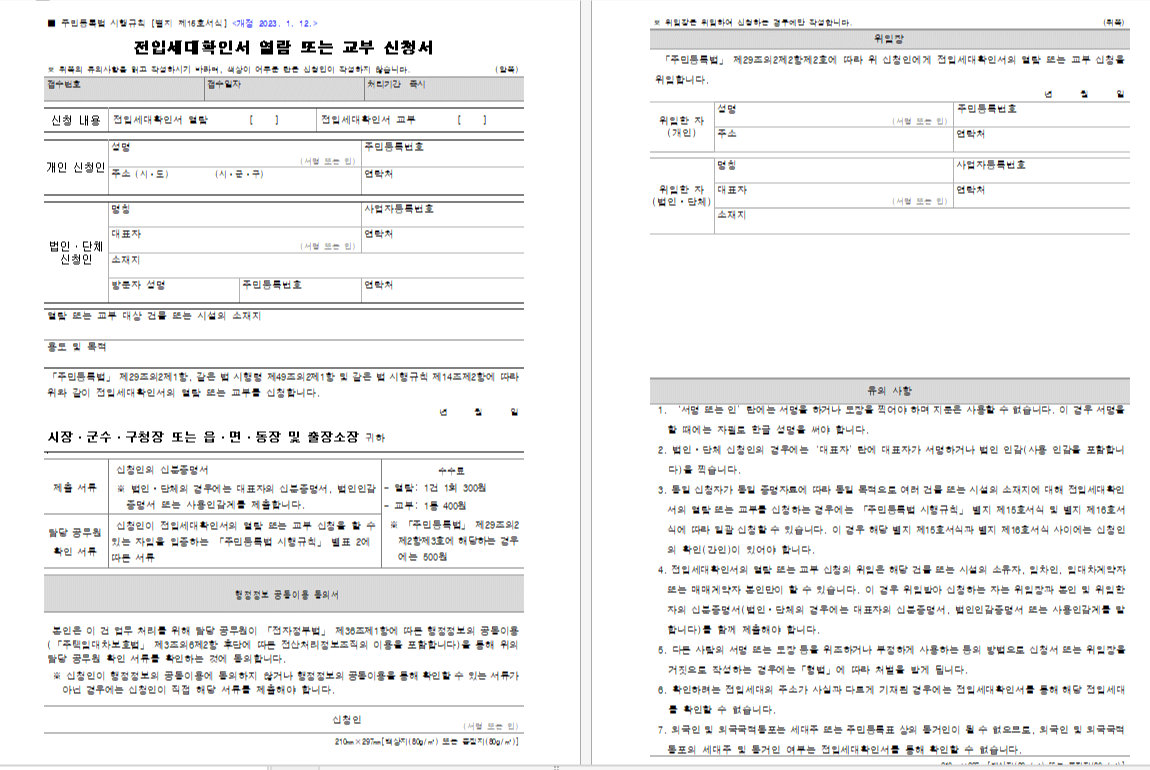 (2) 임차인의 경우 : 그리고 위에서 말씀드린 것처럼 소유자의 경우엔 별도의 서류가 필요하지 않습니다. 어차피 전산에 조회를 해보면 소유자인지는 나와있기 때문이죠. 하지만, 임차인의 경우엔 임차인임을 증명할 수 있는 임대차계약서를 필수로 지참하셔야 합니다.