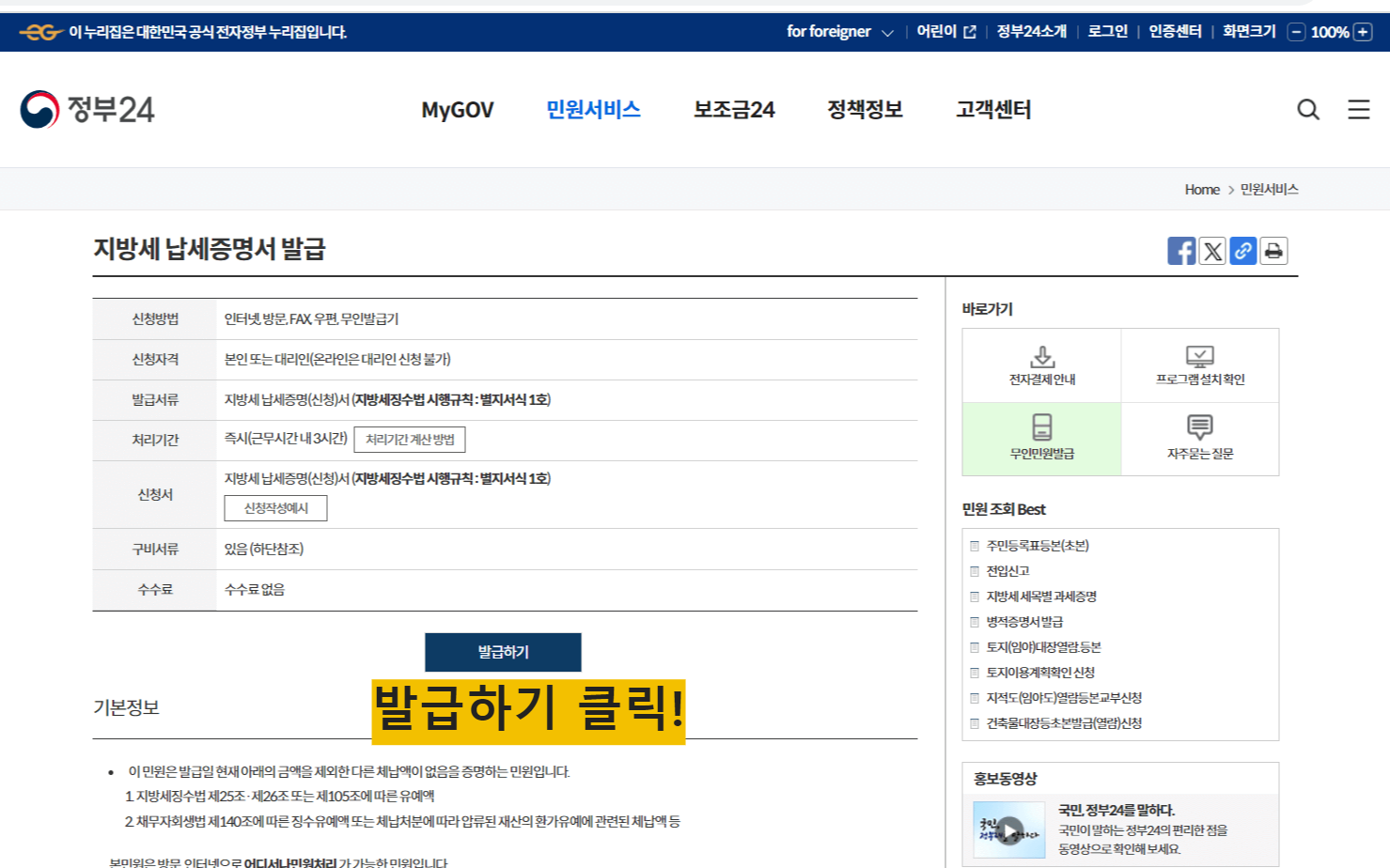그럼 본격적으로 지방세 완납증명서 발급하는 방법에 대해 알아보겠습니다.