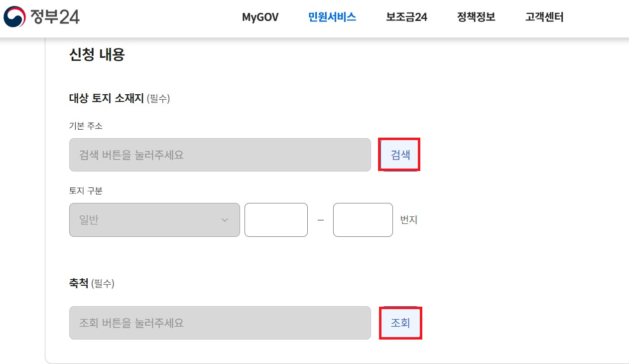5) 발급 대상 토지 소재지 입력 및 축척조회