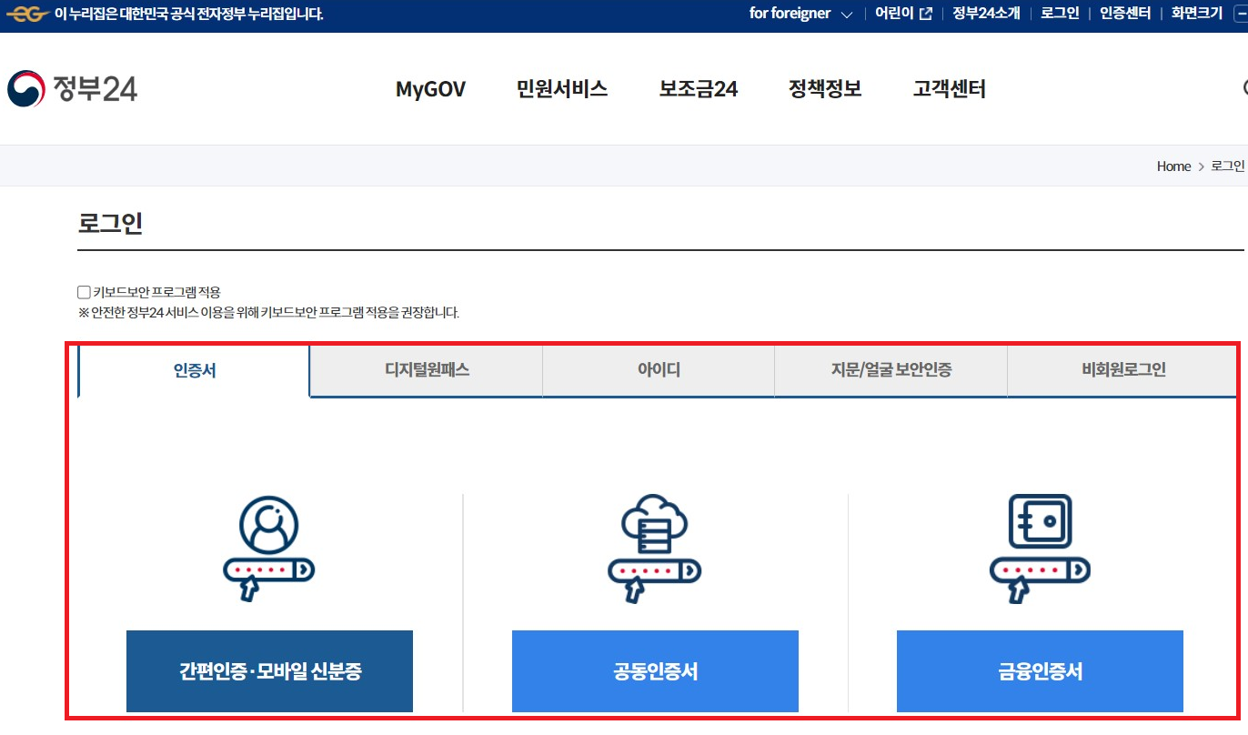 본인이 편한 방법대로 정부24 로그인을 해줍니다.