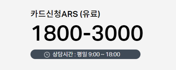 카드발급안내 및 단순상담(1800-1111 전화 후 숫자 4)